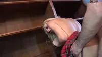 In the beginning scene, our beautiful blonde couple stands passionately gazing into each other's eyes as he places a soft yet firm hand upon her shoulder, leading her to sit gracefully upon his lap.His hand finds its way to her skirt, slowly lifting it up her delicate legs and revealing her enticingly shaved pussy.Her thighs quiver in anticipation of the pleasure that is soon to come, as he takes his time exploring each inch of her smooth skin, from her perky nipples to the roundness of her buttocks, before finally resting at her swollen, moist labia.His tongue darts out for a quick taste, teasing her clit and causing shivers to run down her spine as she lets out a gasp.As the video progresses, our lust-struck pair moves on to more adventurous poses, their passion ignited even further by the plaid skirt that first brought them together.With fishnet stockings adorning her legs, and a vibrant plaid blouse framing her heaving chest, she straddles him in a doggy-style fuck that leaves her pussy dripping wet, the smell of sex and lust in the air.Their bodies move in perfect harmony as she rides his fat cock with vigor, eyes locked onto each other's, fully absorbing the passion between them.His hands grip her generous tits and ass, making sure every inch of skin is caressed, every nerve is stimulated to the fullest.Each thrust sends shivers through their bodies, as his cock fills her wet cunt, their breathing deepening with the intensity of their shared pleasure.The room is filled with an audible symphony of moans and sighs as they find themselves lost in each other's touch.As the climax approaches, the man pulls out for that perfect view of his fat cock sliding back into her tight cunt.He jerks it rapidly, a bead of precum glistening at the tip before eruption.The sight only fuels her own desire as she starts rubbing her clit with fervor, both eager to reach their peak at the same moment.As the final scene closes, the couple is bathed in each other's love and lust, their bodies glistening in the aftermath of their shared pleasure.With a final tender kiss, they promise to continue exploring the depths of their desire, forever connected through the unforgettable memories of the love-making that started with the plaid skirt.